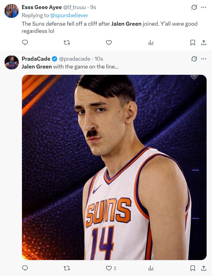 但也有太阳球迷嘲讽杰伦-格林在关键时刻就拉胯,最关键的反绝杀球不该给他出手。