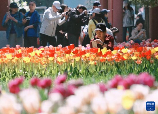 春日暖阳下,北京中山公园内郁金香次第绽放,偷窥日本少妇撒尿com缤纷艳丽、生机盎然,吸引游客漫步观赏,拍摄定格春日美好景致。
