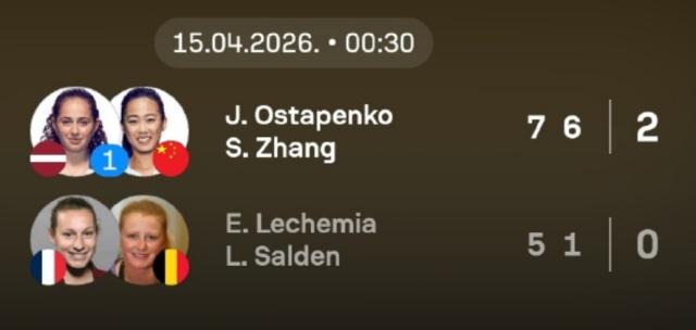 首轮面对勒夏米娅/萨尔登,张帅组合优势明显,首盘双方都迅速进入状态,前10局各自保住发球局,比分交替上升至5-5平。关键时刻,张帅与奥斯塔彭科展现出头号种子的硬实力,凭借精准的网前截击与默契的底线配合,成功破掉对手关键发球局,随后稳稳守住自己的发球局,精品+国产+传媒以7-5拿下首盘,为整场比赛奠定了坚实基础。